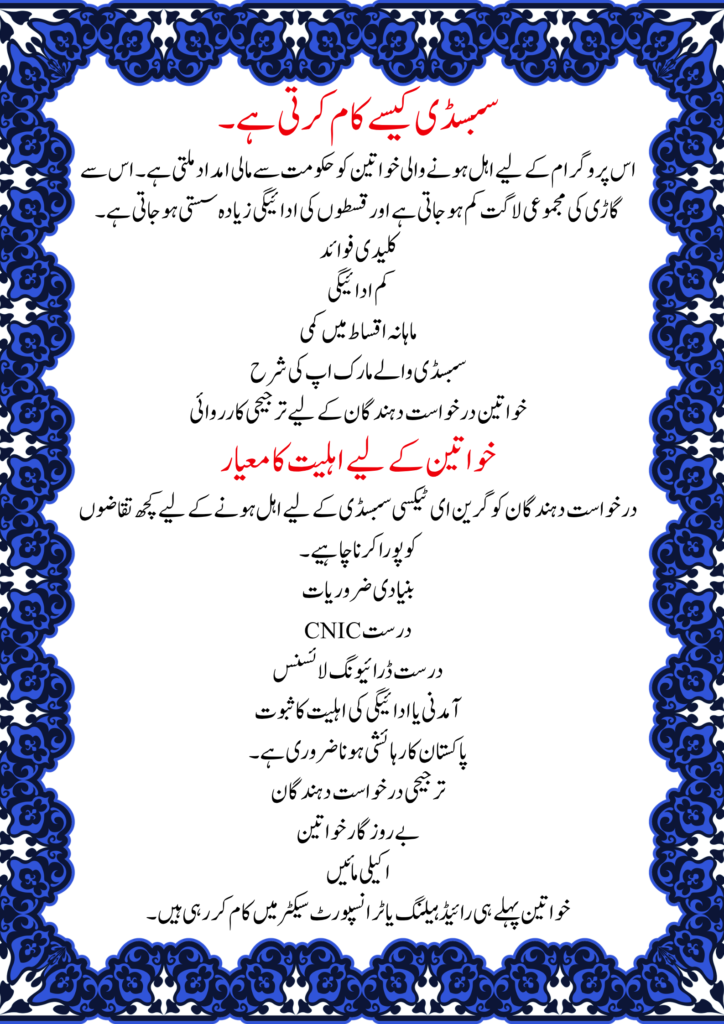 The Green e-Taxi Subsidy for Women 2026 is part of Pakistan’s broader effort to support women financially while promoting clean energy. This program is designed to help women purchase and operate electric taxis through subsidies, low-interest financing, and flexible payment plans. It reduces fuel dependency and opens new income opportunities across the country.